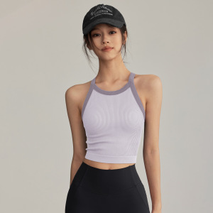 跨境爆款撞色款运动内衣训练健身瑜伽背心无缝一体式胸垫文胸现货