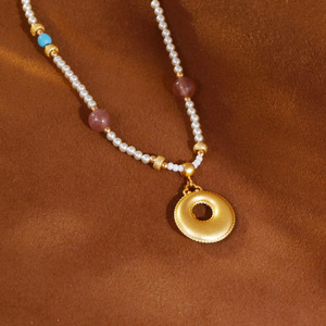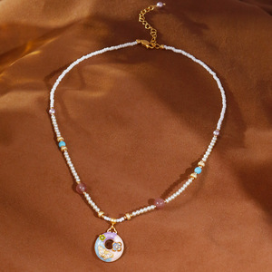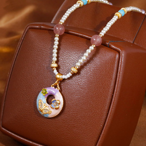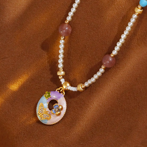 法式滴油撞色香芋紫圈圈吊坠珍珠项链小众夏季多巴胺新中式锁骨链