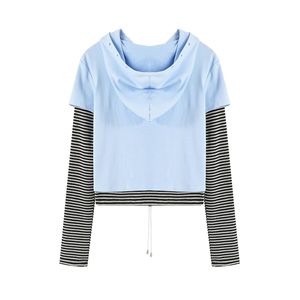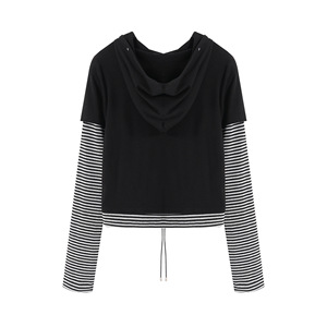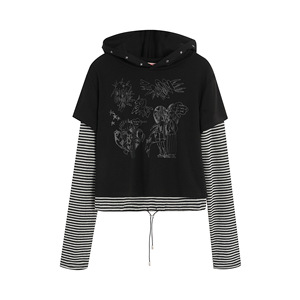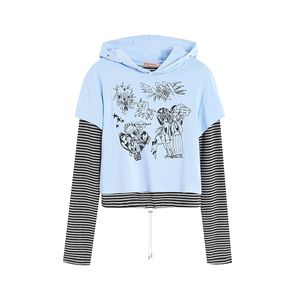 启宏衣社美式复古潮设计感ins条纹拼接印花宽松女男秋冬长袖卫衣