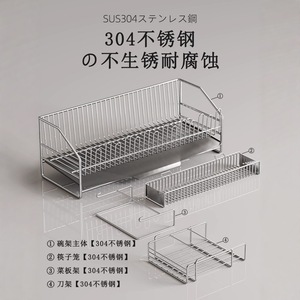 304不锈钢碗碟架【主架+杯架+刀架+筷子篮】
