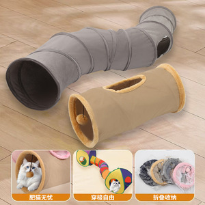 麂皮绒猫隧道 响纸可折叠钻洞滚地龙益智猫玩具自嗨解闷宠物通道