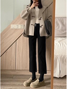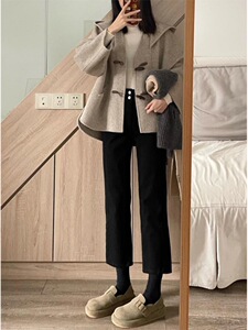 牛角扣连帽呢子大衣女装2025秋冬季新款毛呢外套小个子韩系中长款