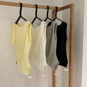 WGWE6604轻奢不规则无袖T恤夏季新款气质荡领修身显瘦上衣