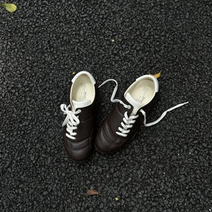 复古运动休闲鞋女2025新款斜系带百搭足球薄底德训鞋平底阿甘鞋女