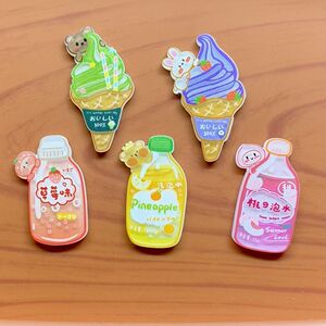 亚克力彩色冰淇淋饮料diy手工发夹头绳胸针手机壳冰箱贴贴片批发