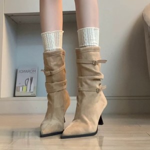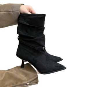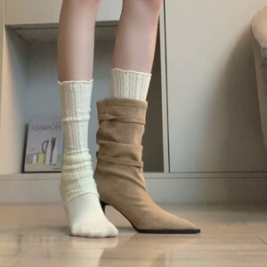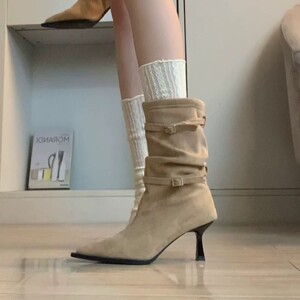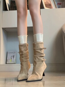 堆堆长筒靴女2025新款欧美粗跟骑士靴西部牛仔靴法式短筒靴女