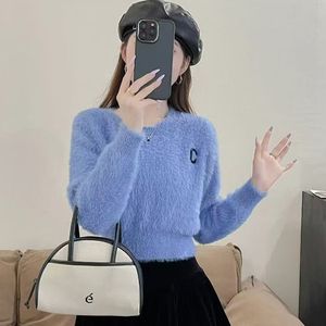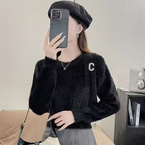 温柔小香风软糯仿水貂绒毛衣女秋冬内搭小个子高腰短款宽松针织衫