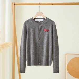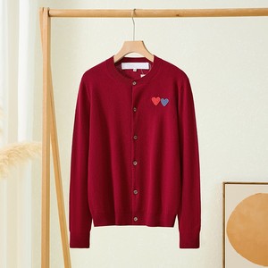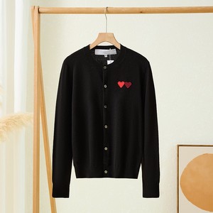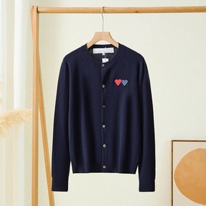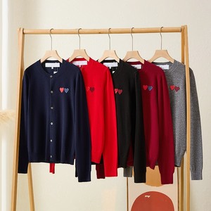日系圆领play川久双爱心纯100%羊毛针织开衫保玲长袖外套毛衣女士