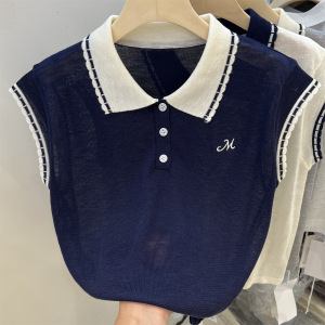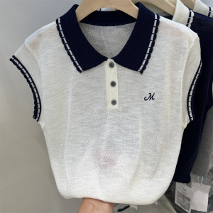 冰丝无袖花边针织polo衫t恤新款韩系设计感上衣气质女装夏高级感