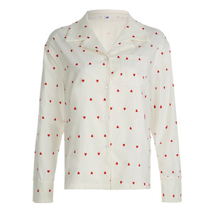 春秋欧美两件套爱心印花长袖衬衫长裤睡衣女宽松舒适家居服套装女
