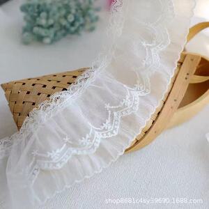 8CM宽双层皱褶童装装饰单层拼接蕾丝女装领口饰品袖口网布花边