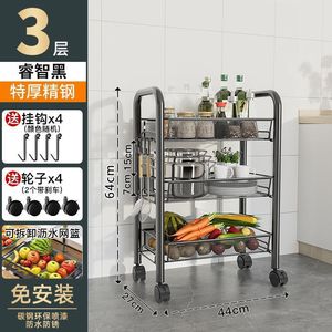 升级加厚碳钢双把手黑3层+挂盒+轮子-关注领10元劵马上结束【后9张】☆