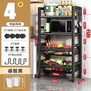 厨房置物架落地多层家用微波炉架子蔬菜收纳架烤箱架储物架带轮子