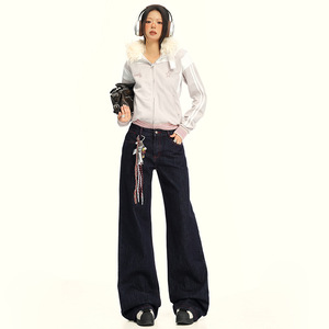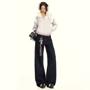 美式低腰窄版直筒牛仔裤女2025年秋冬新款宽松慵懒显瘦阔腿拖地裤