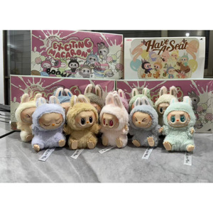 【跨境】Labubu泡泡拉布布马卡龙坐坐派对一代二代搪胶毛绒公仔挂