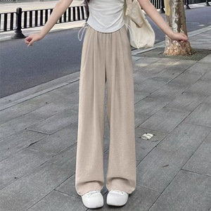 夏季薄款小个子女无托腹宽松夏款奶芙休闲长裤子外穿裤阔腿裤粉色