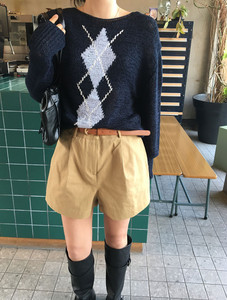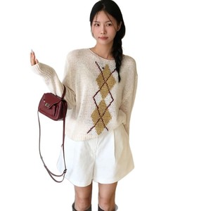 韩国chic 2025早秋新款韩系学院风菱格纹透气长袖针织衫女上衣