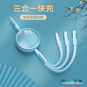 【100W超级快充】天蓝色1.1米三合一伸缩快充