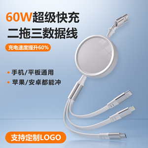 【60W二拖三快充】珍珠白1.1米三合一伸缩快充