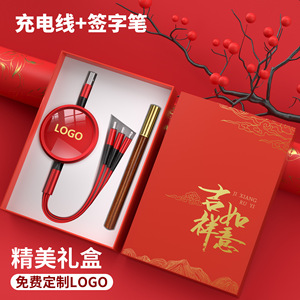 【支持定制logo★吉祥如意盒装★签字笔】幸运红100W超级快充1.1米