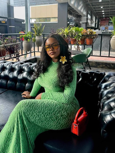 STOCKS跨境现货2025秋季新款气质收腰修身包臀长裙连衣裙优雅