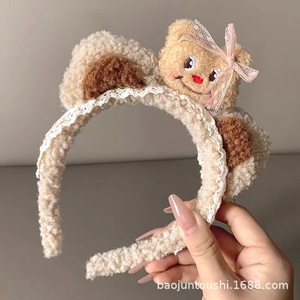可爱小熊耳朵毛绒发箍洗脸女新款高颅顶专用头箍儿童压发发捆头饰