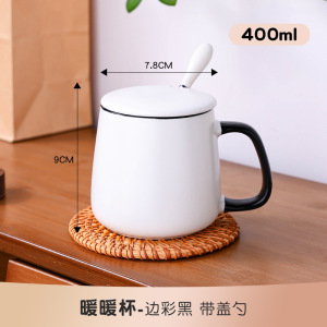 马克杯带盖勺套装咖啡办公家用陶瓷大肚容量男款喝水杯子女生