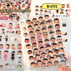 可爱卡通日本小人表情贴纸ins高颜值学生手账diy创意装饰素材透明