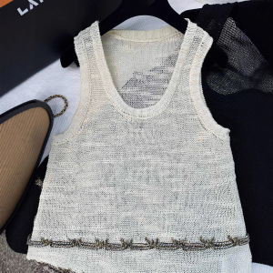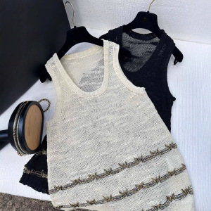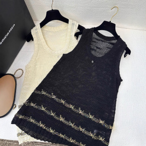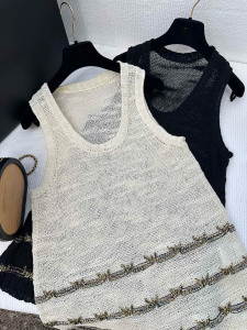 2025夏季新款南油cha时髦气质小香风宽松减龄百搭百搭字母u领背心