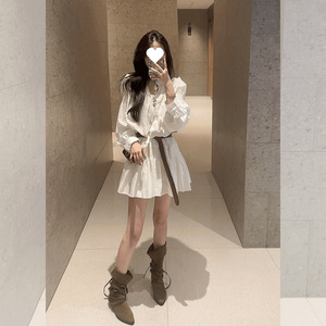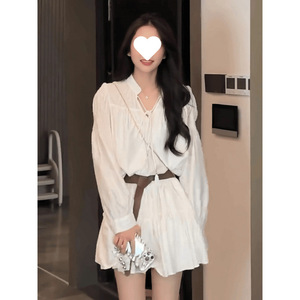 2025秋法式白色衬衫连衣裙女秋装新款夏季小个子收腰显瘦气质裙子