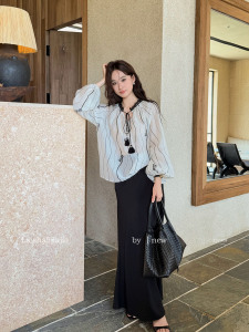 LS述致 高级感宽松长袖防晒衬衫上衣女2025早秋新款休闲小衫22730