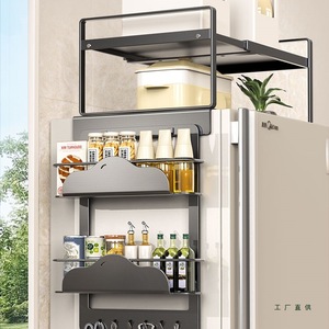 冰箱置物架侧面整理磁吸顶部收纳挂架厨房多层保鲜膜调料收纳