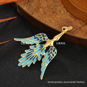 新中式合金饰品配件仿景泰蓝滴油大小凤鸟宫廷风DIY新娘头冠材料