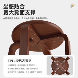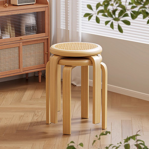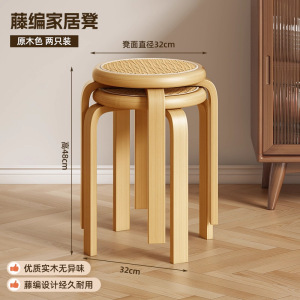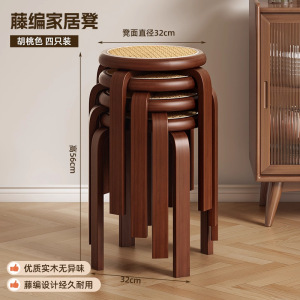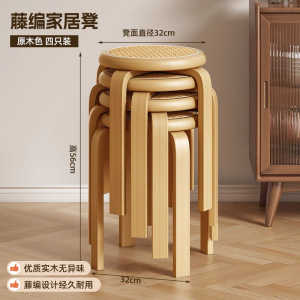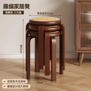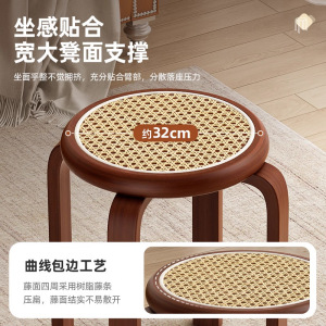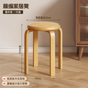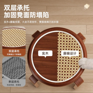 实木藤编圆凳家用中古餐椅客厅久坐舒服茶桌凳子板凳餐厅备用餐凳