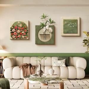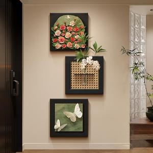 中古风玫瑰入户玄关装饰画水培绿植客厅挂画法式复古走廊过道壁画