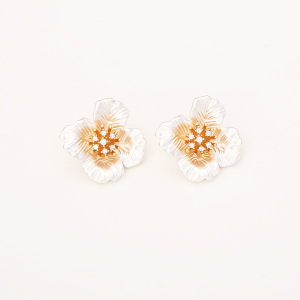 白色纹理花朵耳钉高级感轻奢气质锆石花蕾耳环精致时尚百搭耳饰女