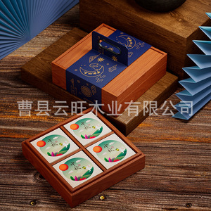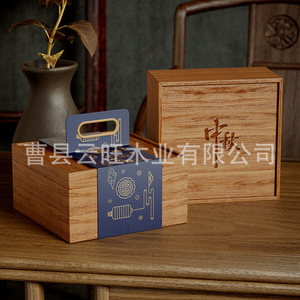 新中式木质双层月饼收纳盒实木伴手礼包装盒方形茶叶盒礼物收藏盒