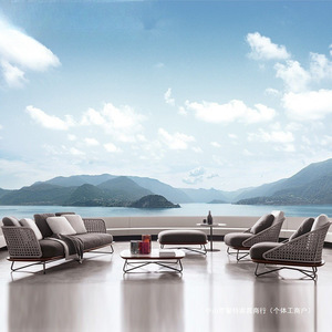 户外沙发菠萝格实木休闲藤椅茶桌组合防水酒店露阳台别墅庭院家具