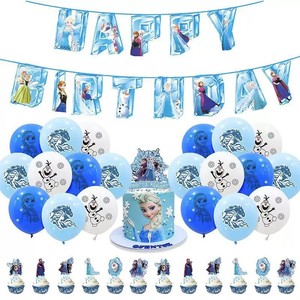 62冰雪奇缘生日派对套装【拉旗+蛋糕插牌+气球】