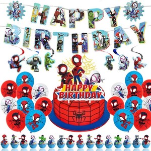 44蜘蛛侠生日派对套装【拉旗+蛋糕插牌+气球+螺旋】