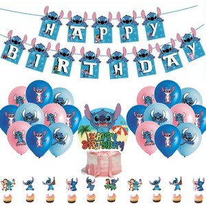64史迪仔派对用品套装【拉旗+蛋糕插牌+气球】