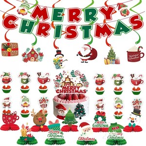 40圣诞节派对用品【拉旗+蛋糕插牌+螺旋+蜂窝摆件】