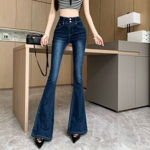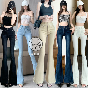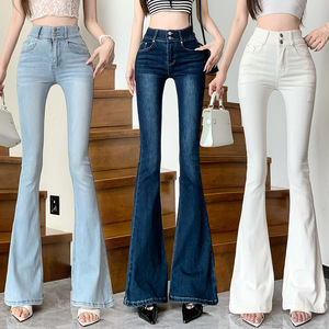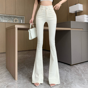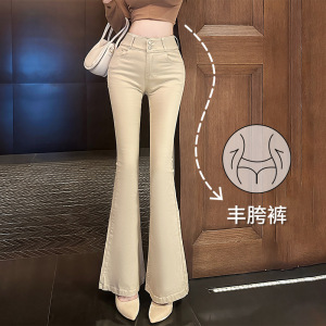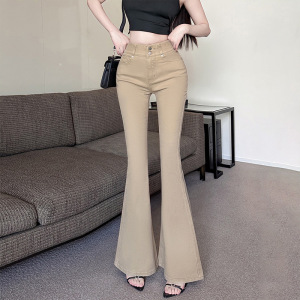 实拍奶茶色自带丰胯微喇牛仔裤女2025秋季新款高腰双扣弹力长裤