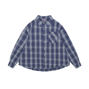 D195美式复古高级感街头男女款刺绣小众设计男式古着格纹长袖衬衫