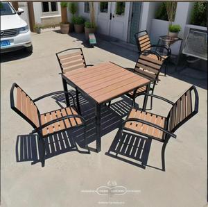 休闲餐厅商业街庭院桌椅塑木桌铝合金金属桌椅组合户外桌椅