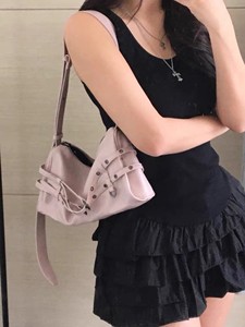 Y2K复古辣妹皮带扣单肩斜挎包韩国博主同款小众设计大容量机车包