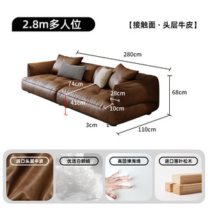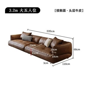 佛山真皮沙发意式极简头层牛皮复古简约直排小户型大坐深云朵沙发