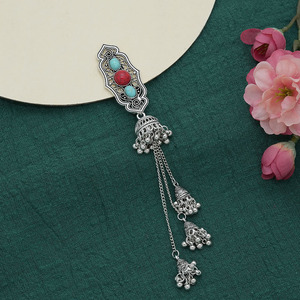 民族风藏族铃铛流苏发夹女复古仿松石刘海侧边夹蒙古族旅游发饰
