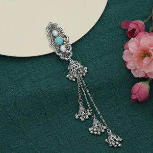 仿松石玉瓶夹白蓝珠长流苏发夹