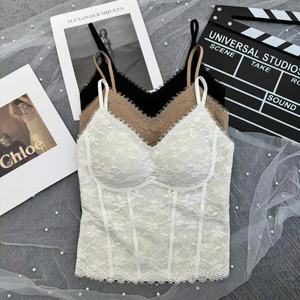 纯欲复古碎花小背心内衣简约百搭带胸垫春夏美背文胸外贸跨境
